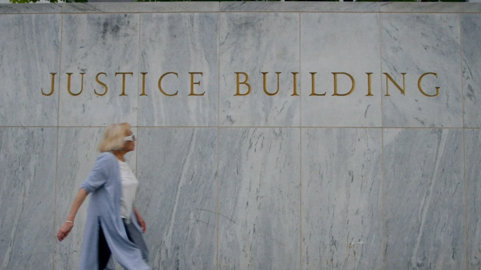 We were very intentional with our visual language by playing with scale - Hilda's small stature juxtaposed with imposing governmental building as a way to show what she was up against. We also played with time and narrative. In one case when she recounts the abuse that happened to her in the 1950s we used present day imagery of her home to demonstrate that she lives with the trauma in the present time.